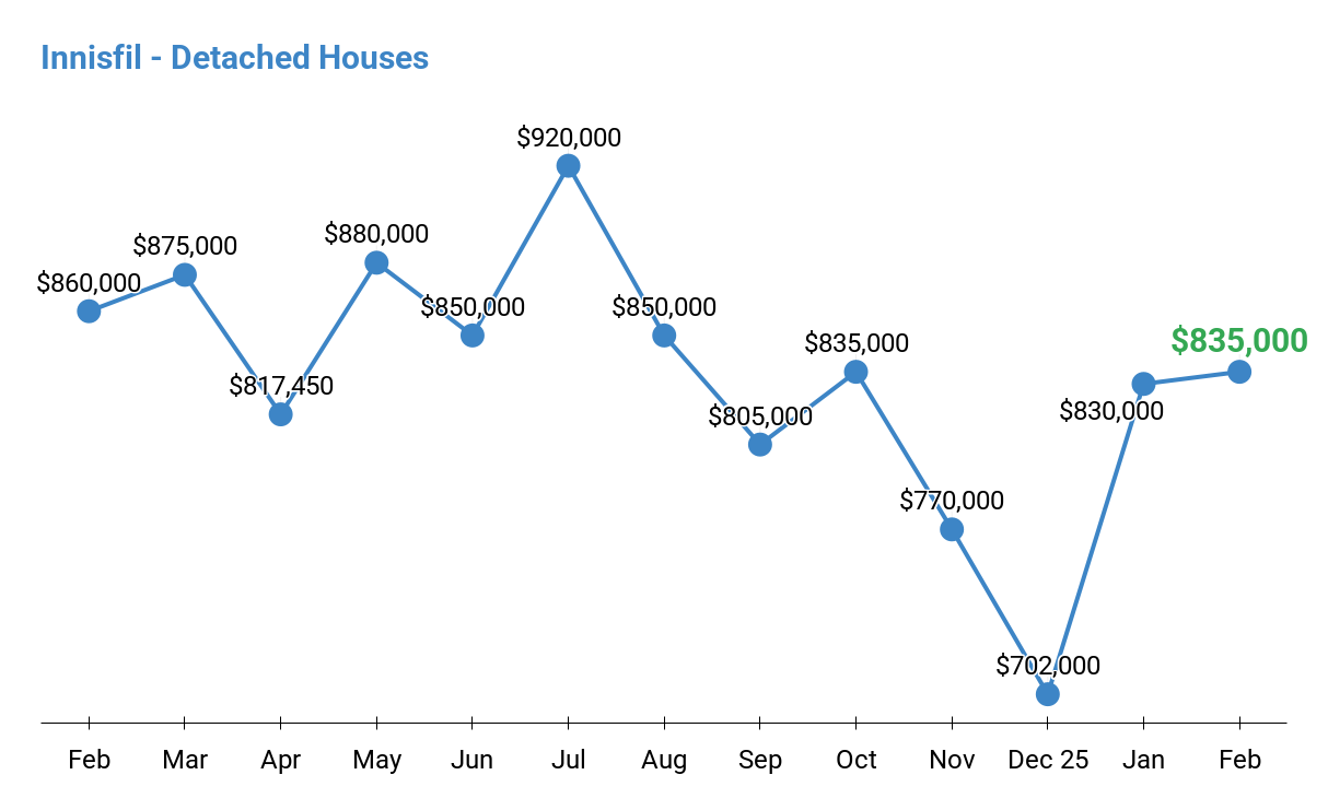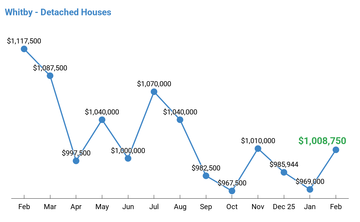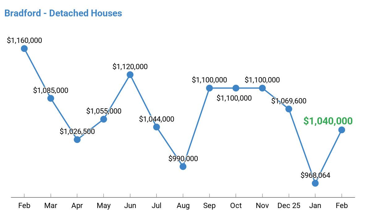 Цены на отдельностоящие дома (detached houses) выросли в городах Innisfil, Brampton, Whitby, Bradford, Pickering, Newmarket, Toronto West, Burlington, Vaughan и King.